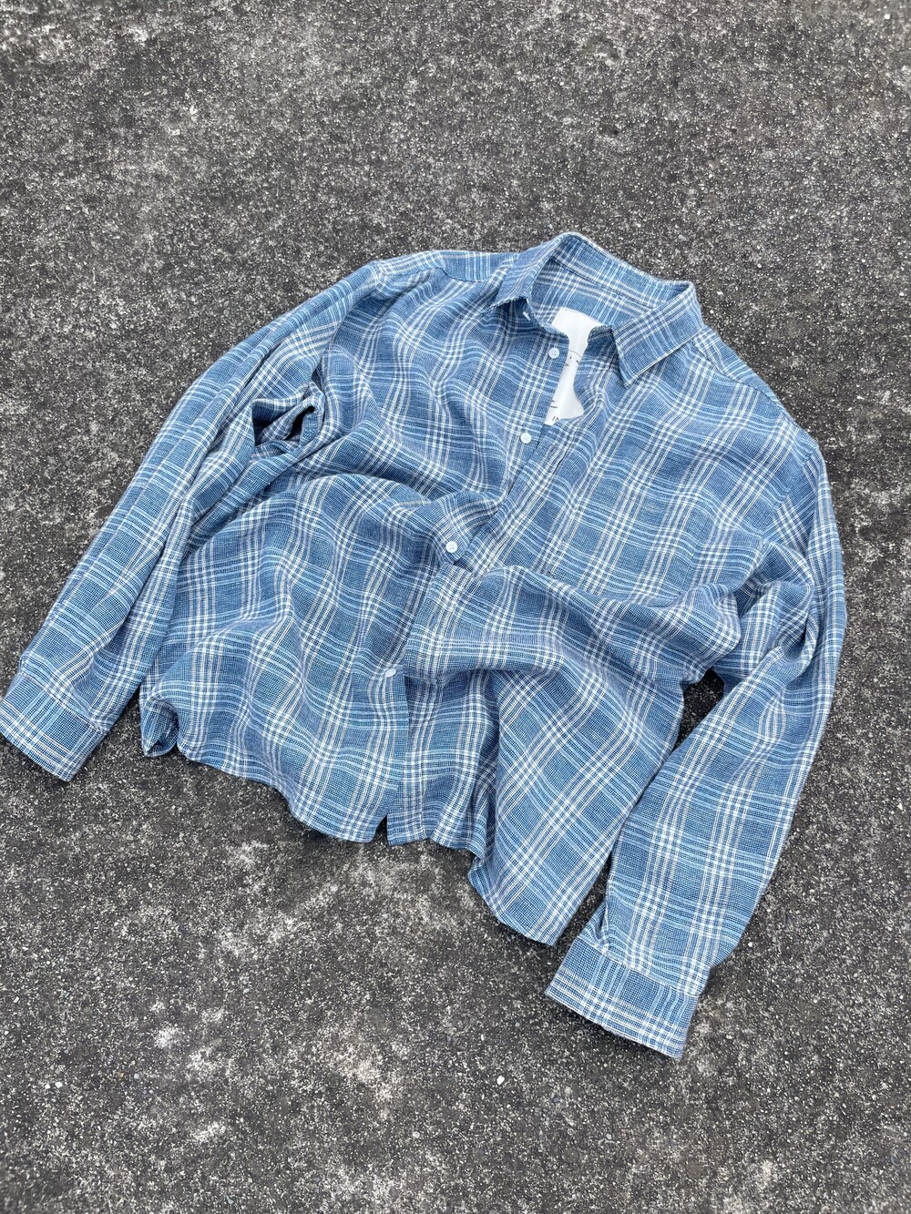 IW-046 Large Fit Linen Blue Check Shirts