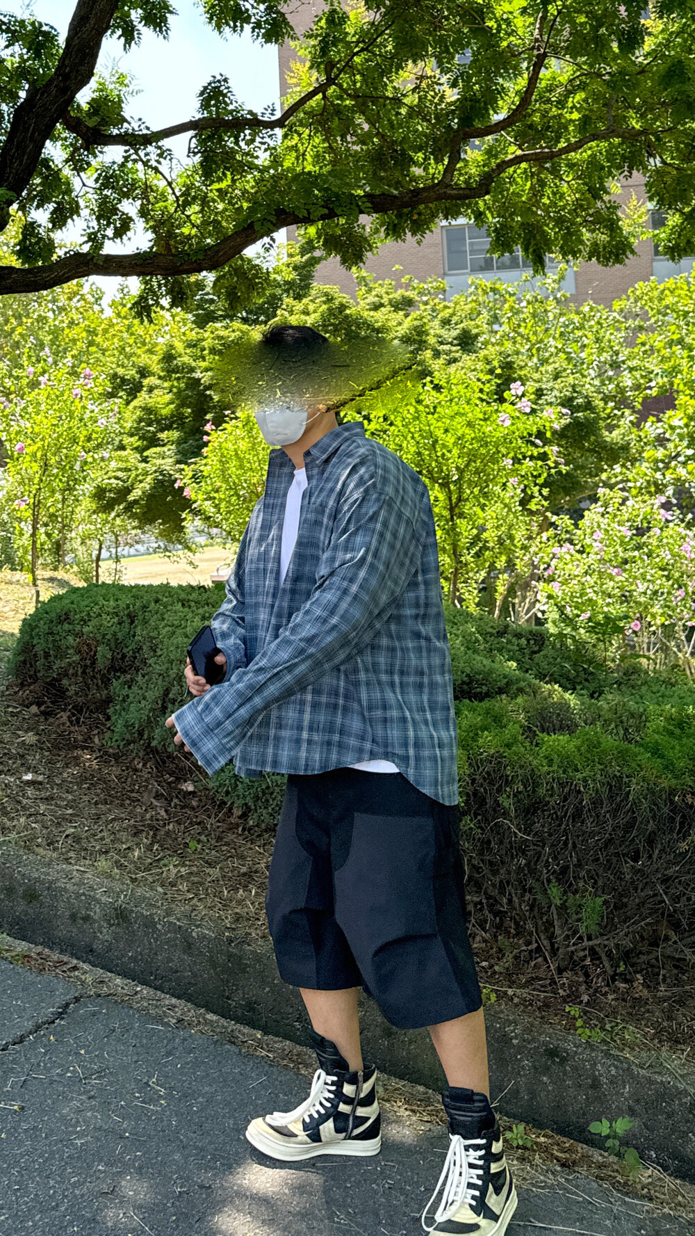 IW-046 Large Fit Linen Blue Check Shirts